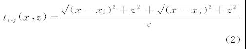 式中:xi,xj分別為發(fā)射陣元和接收陣元的橫坐標(biāo);c為超聲波在試塊中傳播的縱波速度。