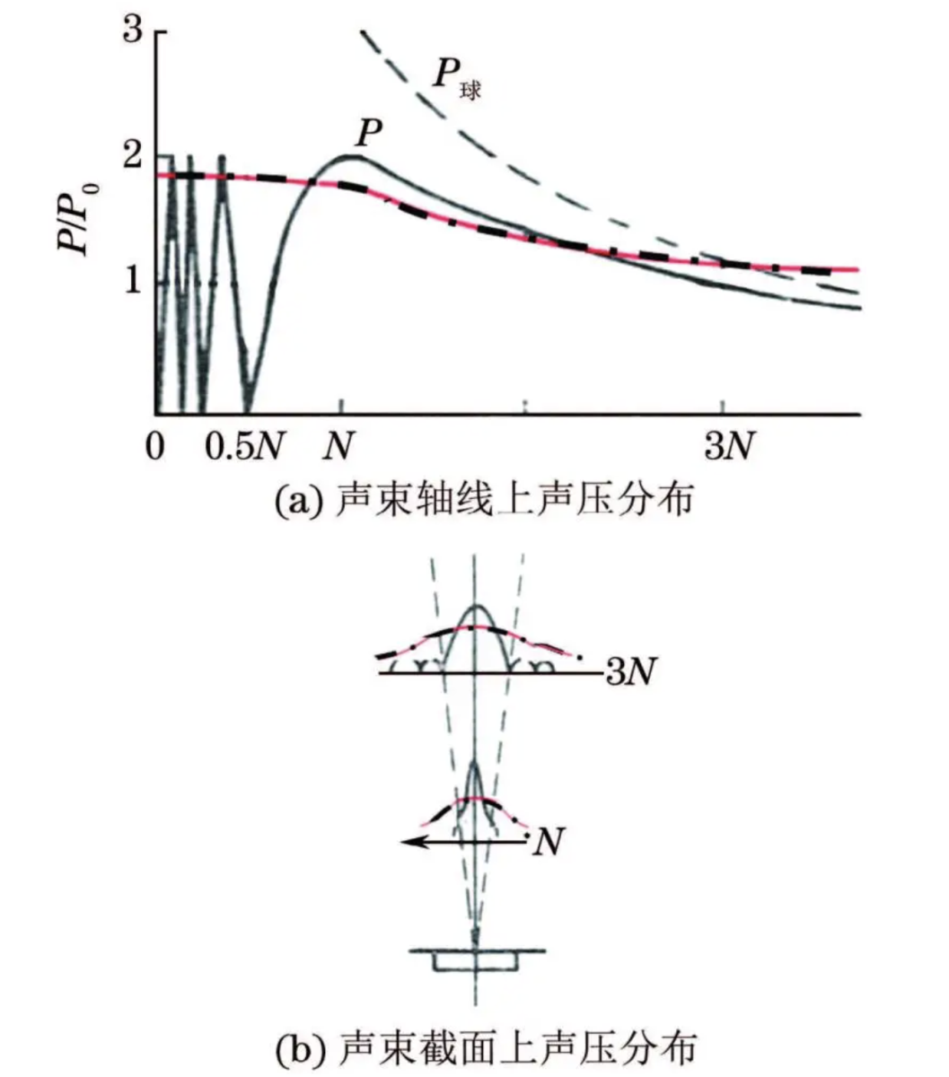 (2) 全聚焦相控陣聲場(chǎng)的聲壓分布與常規(guī)超聲的聲場(chǎng)不同。